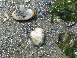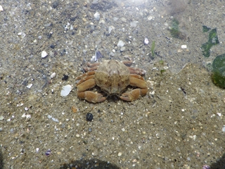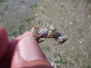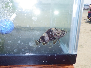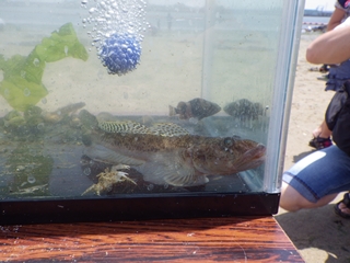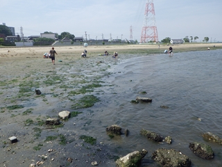 実は、本番2週間前に下見したが一人だったせいか獲物の種類数が野間海岸や常滑の蒲池海岸と比べると少なく「亀崎の砂浜だからやもえないか…」と思ったものであった。それが、毎度思うことでことであるが、たくさんの人数でヤルと本当に種類数も個数も格段と多くなり、獲物の説明会は簡易即席水族館も結構賑やかなものとなり子どもたちの目も輝いているように見えた。