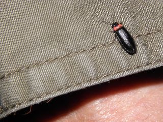 【左】服に泊ったヒメボタル 【右】ヒメボタル