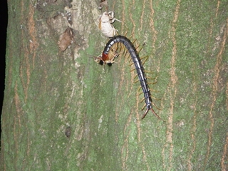 【左】子どもだけでコクワをゲット  【中】右のムカデの食事を観察 【右】ニイニイゼミが殻から出てきたところをムカデが食す