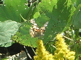 【左】ウラギンシジミ 【中】ヒメアカタテハ 【右】橋の上からザリガニを見ています