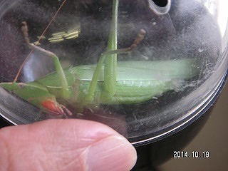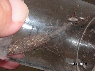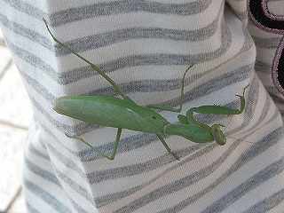 【左】管理棟前に集合 【右】ハラビロカマキリ