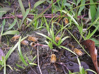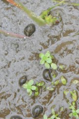 【右】ヒメモロアラガイ(植物はミズハコベ?)