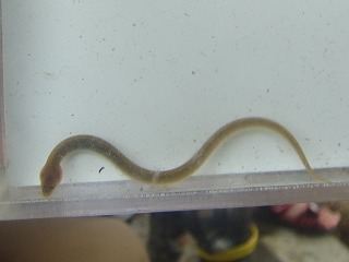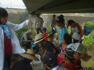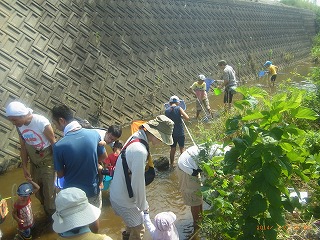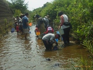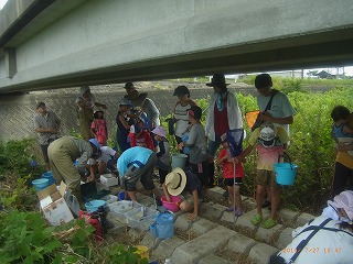 現地に到着し、元気に楽しく活動を開始しました。参加者は、当会のベテランに負けないくらい採集に精通していてカワアナゴやウナギの稚魚などを採集しました。 (記・降幡)