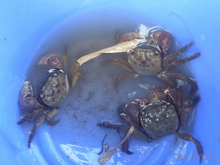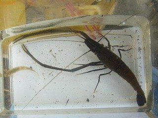 【左】モクズガニ(上海蟹に近い仲間) 【中】ミゾレヌマエビ(ウナギの好物だそうです) 【右】テナガエビのお父さん