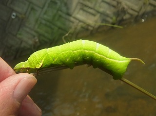 【左】ヤブガラシを食べていたブドウスズメガ 【中】シジミ 【右】イシマキガイ