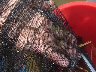 【左】タモの使い方がいいね 【右】エビがたくさん取れました