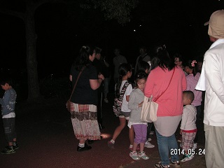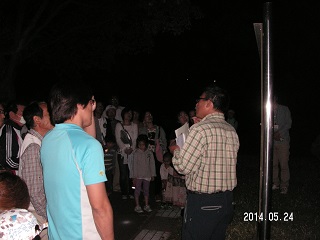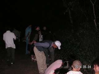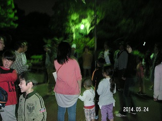 午後9時30分上野台公園駐車場集合。一週間前に公園管理協会(東海市公園管理協会主催の行事)40名募集で40名になりましたので当日よろしくお願いしますとの電話がありました。川の生き物観察とホタルの観察会は人気の観察会で毎回それなりの人数が参加してくれます。 昨年ヒメボタルはかなり出てくれました今年はどうでしょうか?事前に管理協会の方が現地に言ってヒメボタルを捕まえビニール袋入れて持って来てくれていました。 担当者からヒメボタルの説明があり期待をしながら現地に向かいます。前方から、いました綺麗だ、の声が上がっています。昨年と比べて少し少ないようですが見れてよかったと思います。終わりにホタルを初めて見た人、手を挙げてくださいと言いますと参加者の約半数の人が初めて見ましたと行っています。ホタルの見えるちころが」少なくなっていますね。来年はもっとたくさんのヒメボタルがみれますように期待をし解散しました。(記・岩崎 )