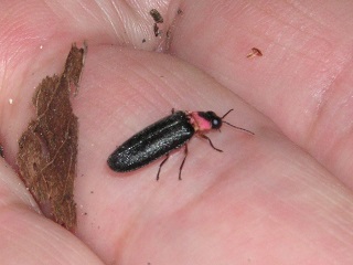 【左】ヒゲブトハムシダマシ(トイレにいました) 【右】手の上のヒメボタル(観察後、すべて元の場所に返しました)