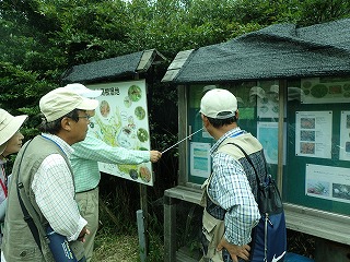 【左】板山湿地の生育観察         【右】湿地の様子を解説