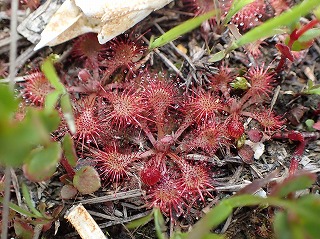 【左】トウカイコモウセンゴケ花           【中】トウカイコモウセンゴケ           【右】ナハエモウセンゴケ(外来)