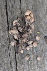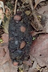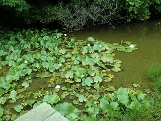 【左】手に負えない園芸スイレン           【右】イタチの糞(桜の種、多量に含)