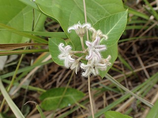 雨を心配していたが曇り空で少し蒸し暑いが観察にはまず〜。参加者はいつもの顔触れが多い。挨拶後出発してまもなくキカラスウリに出会が、カラスウリの2倍ちかくありそうでいかにも重そうに数個ぶら下がっているのを見る。また水田の側にはアメリカミズキンバイ(ヒレタゴボウ)の花が咲き、降幡さんが解体した実を見て種の数が多いのに驚き急増してもおかしくないことを実感しました。シラタマホシクサは8月の雨量不足から一部の個所で地面の乾燥から元気がない場所があるが、それ以外では花の開花・色も一番良い状態で観察が出来たのではないかと思われる。また伊藤さんから顕微鏡カメラで撮影されていた写真を見せてもらい自分の目で見る状態とは違い花の内部の構造が良くわかりました。樹木ではサワフタギの実が瑠璃色に熟し色の美しさに目をひきつけられる。途中では木の実を試食するがまだ少し早く感じたが、熟してしわのついたムクノの実を選んで皆で食べ干し柿に似た味を分かち合いました。準備万端(捕獲用ケース)の藤井さんはアオ虫類をゲットして大満足の様子でした。(記・宮内)