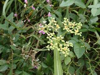 【左】 アレチヌスビトハギ、ヤブガラシ 【中】 キリ 【右】 ニッケイ