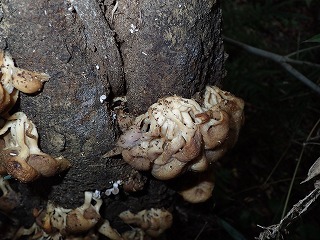【左】 ヒラタケ 【中】 ノコギリクワガタ 【右】 マイマイカブリ