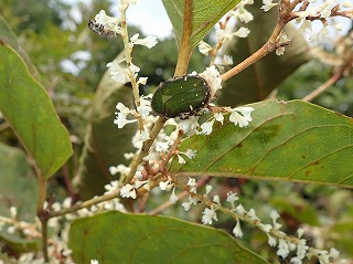 【左】 コアオハナムグリ 【中】 ジュジナガカメムシ 【右】 ジョロウグモ