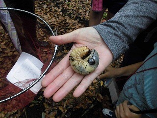 【左】カブトムシの幼虫が居るよ    【右】大きなカブトの幼虫