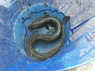 【左】ニホンウナギ   【中】モクズガニ   【右】ミゾレヌマエビ