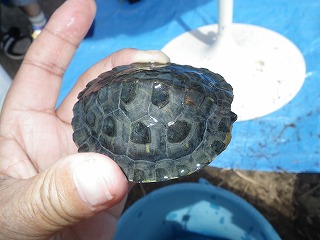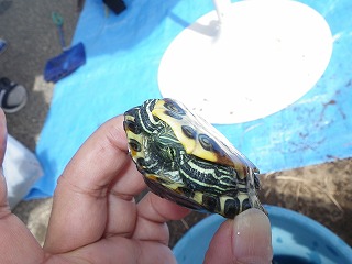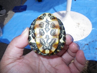 【左】ミシシッピアカミミガメ (甲羅)   【中】ミシシッピアカミミガメ (頭部)   【右】ミシシッピアカミミガメ (腹部)