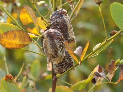 【左】アキアカネ 【中】ガガイモの実を割ってみました 【右】クルマバッタモドキ