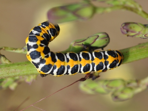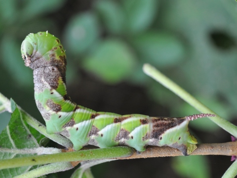【左】ホソバセダカモクメ 【中】シモフリスズメ 【右】「スズメノショウベンタゴ」