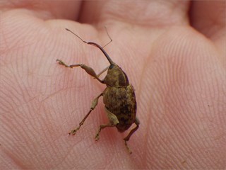 【左】ヒメウズがあった。これも当地では珍しい 【中】コナラシギゾウムシ。写真クリック→ビッグ 【右】ナラメリンゴフシ