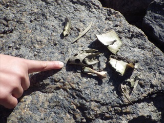 【左】阿久比川河口で遠方の杭の上にとまっているミサゴを観察 【右】亀の骨がまとまってあった