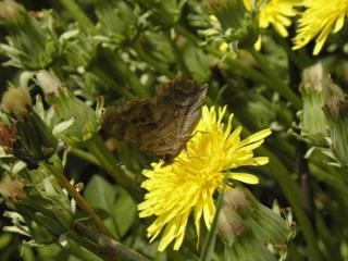 【左】トウカイタンポポに来たアカタテハ     【右】バラ科のニガイチゴ