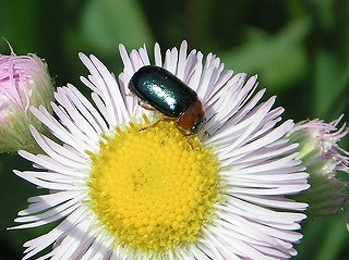 【左】コガタスズメバチ         【中】ベニシジミとコアオハナムグリ         【右】クビキリギス(成虫越冬します)