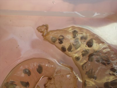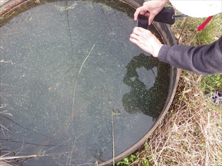 【左・右】当然、参加した指導員は興味深く観察。両生類の卵だから、ある意味、カエルの卵に似てる…