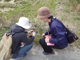 田んぼも道端もなじみの春の野草が多く見られました。チガヤの草原ではワラビのS字の芽生えがたくさん見られました。いつもの春がめぐって来ていることを感じうれしいねと確かめ合って解散しました。