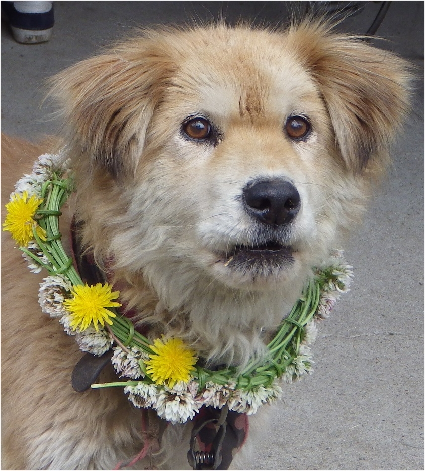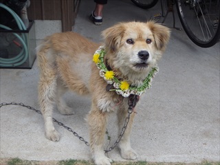 【右】途中で作った花輪。自宅のわんちゃんのお土産になった。写真クリック→花輪部分が拡大