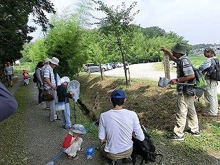 梅雨の中休み、天気は良く暑くて、熱中症を心配する日でした。駐車場付近の川にハグロトンボがいました。池のふちでみで、チョウトンボが見つかりました。田んぼの脇をまっすぐ進み、一番奥の手前までを一周しました。時折涼しい 風が吹いて、特に木陰はありがたかったです。今年はオニヤンマが、多数見かけられ、捕まえることができました。裏返しにしたおおきなコメツキが飛んで表向きになるのを 観察しました。クワガタは捕まえられなかったですが、あるお父さんは、メスのクワガタを採りそこねたそうです。樹液が出ているところは少ないように思いましたが、カナブンが数匹で、樹液を吸っているコナラがありました。(記・岩本)