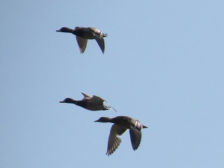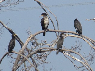 【左】ハシビロガモ           【中】カワウ            【右】カルガモ