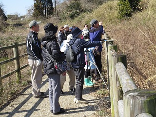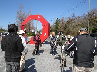 夜半まで降り続いた雨も早朝にはあがり、風もなく春らしい陽気となりました。美浜町総合体育館から往復約3kmの行程を参加者は徒歩で回り、担当のリーダーから野鳥観察のポイント、飛び方や鳴き声による種類の特定の仕方を教わりました。
