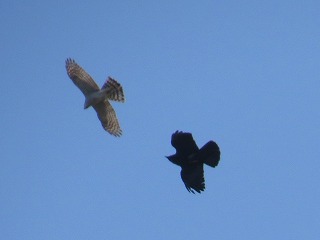 【左】ヒヨドリ         【中】オオタカ(♀)とハシボソガラス         【右】オオタカ(♂)