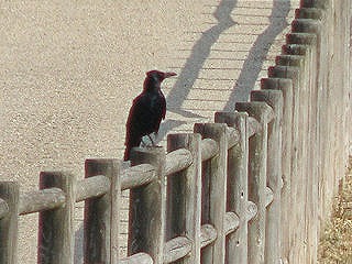 【左】ホーって言っています 【右】池の横にハシブトガラス
