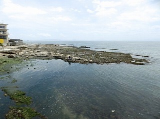富具崎港駐車場から南側の磯場に移動、担当の森田(博)から今回の観察会の注意事項等の説明があり、その後磯場で生き物の観察、採取を始めました。
