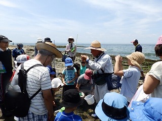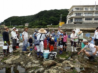 朝より気温があがり暑い1日となりましたが、多数の一般参加者に集まっていただき、たいしたケガもなく観察会の開催ができました。なお、観察会が始まる前に、富具崎港内をウミガメ(アカウミガメ?)が遊泳しているのを指導員が目撃しております。