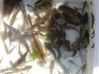 【左】採取した生き物@ 【中】採取した生き物A 【右】アイナメ