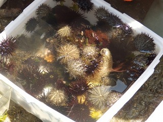 ムラサキウニ、サンショウウニ、ハスノハカシパン(殻)、イトマキヒトデ、マヒトデ、ナガトゲクモヒトデ、マナマコ、イシコ