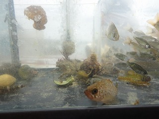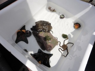 【左】コウライヨロイメバル           【中】ヒラムシの仲間          【右】参加者によるミニアクアリウム