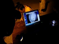 【左】パソコンを利用して拡大観察 【右】パソコン観察画面