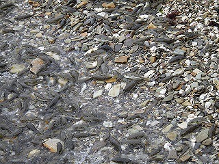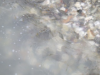 【左】クサフグの産卵の様子(アップ)        【右】クサフグの集団産卵を間近で観察