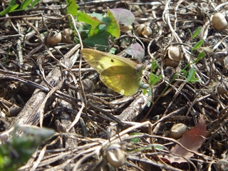 【左】モンキチョウ。卵の産み付けではなかった  【中】ツグミを観る  【右】遠くの枝に止まっているノリスを観る