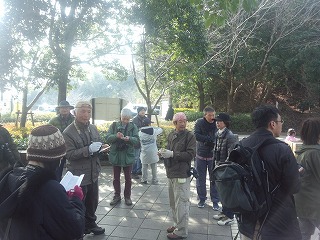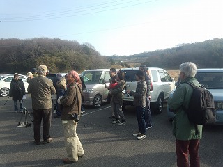 穏やかな日となり、たくさんの参加者がありました。毎年この行事は、常滑野鳥の会と共催で実施している関係で傷害保険の加入は申込制で行いました。募集したところ加入者は0人でした。開会の挨拶は常滑野鳥の会の伊藤さんのあいさつで始りました。毎回こまめに観察記録された「鳥見録」 が配布されました。今回のものは、前回の12月の観察記録で、綺麗な写真も入っているものです。