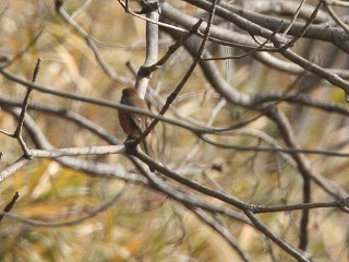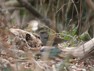 引き続き、公園の東側の谷を北上しました。水田地帯を通り過ぎると水田を耕作放棄した場所にがありました。谷の奥に行くに従い、長い間耕作放棄されらしくハンノキが大きくなっていました。ここは、湧水が流れ出ていて野鳥が訪れるのにいい環境になっていました。所どころにエサ台が設けられていて野鳥を呼び込んでいるみたいなところがありました。今回、クロジやミヤマホウジロが与えたエサを啄みに来ているのを観察することができ、大変楽しい思いが出来ました。一面、エサを人工的に野鳥に与えることは、自然の中で生活している野鳥にとっていいものでしょうか。少し考えてしまいます。