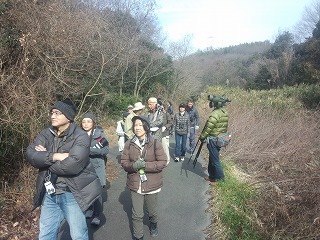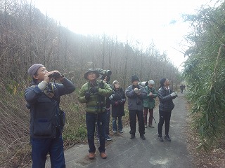 【左】谷戸で観察しながら進む      【右】最後に鳥合せ