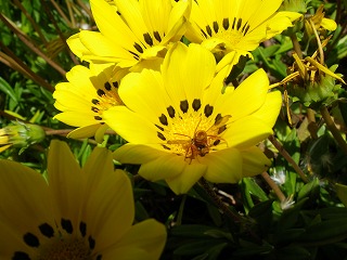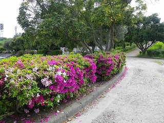 【左】ミツバチ牧場     【右】アゲハチョウが飛び交うツツジ植栽開花中