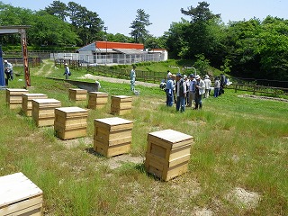 ミツバチ牧場では新たに十数個の養蜂箱が置かれ、ハタラキバチの様子を手に取るように観察できました。彼女たちの社会生活についても少なからず解説できました。