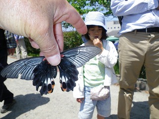 【左】ススメバチに注意しましょう     【右】触ってみよう (アオスジアゲハ)